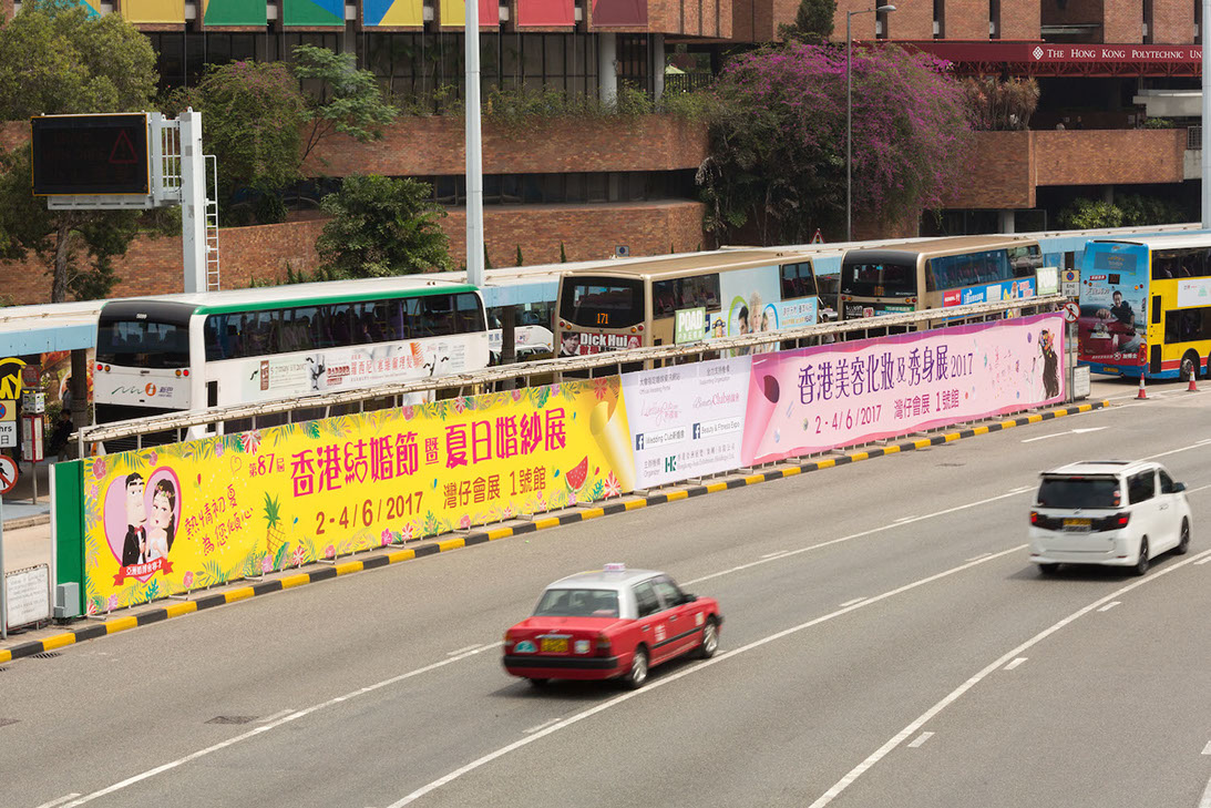 紅隧大型戶外廣告牌、銅鑼灣波斯富街77-83號、瓊華中心燈箱廣告。